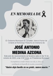 Toño, como de estimación se le conocía, rindió tributo a la madre tierra. El gobierno municipal de Canatlán le rendirá homenaje póstumo este viernes 10 de octubre, a las 14.30 horas en el edificio municipal.