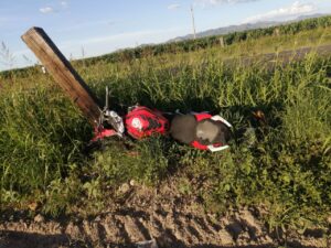 Con el impacto y la caída, el joven de 19 años quedó sobre la cinta asfáltica y la motocicleta a un costado, junto a una cerca de alambre.