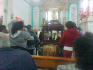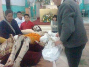 LA SAUCEDA, CANATLÁN, Dgo.- Entre cantos, rezos y lágrimas nostálgicas fue trasladada la imagen del Divino Pastor, de La Sauceda, que es el lugar de su residencia, a la ciudad de Guadalajara, Jalisco, donde será restaurada en el taller Misión Arte Asociación Civil.