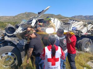 Una de las personas lesionadas es Alexis, de 22 años y también con domicilio en la capital del Estado. Socorristas de Proteccion Civil apoyaron para sacar al conductor de la cabina, al quedar prensado, para posteriormente ser traslado al Hospital Integral de Canatlán para su valoración y atención.