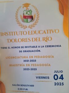 Santiago Papasquiaro, Dgo.- El Instituto Educativo Dolores del Río, en Santiago Papasquiaro, prepara la ceremonia en la cual serán entregadas cartas de terminación de estudios de la Licenciatura en Pedagogía así como también a quienes culminaron su preparación como Maestros en Pedagogía.