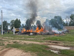 Lo anterior en la tarde de martes, aproximadamente a las 17.00 horas, acudiendo de inmediato personal uniformado a constatar y atender este problema, en lo que pareció una vivienda pequeña hecha a base de llantas y cartón.