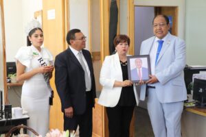 Fue la presidenta Dora quien hizo el acompañamiento del Dr. Luna de la Peña, actualmente Director Academico del CECyTE en el Estado, para la colocación de la imagen. Imágenes FB y video el autor.