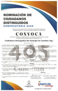 El H. Ayuntamiento de Canatlán hizo pública la convocatoria para la entrega del reconocimiento Ciudadanos Distinguidos del Municipio de Canatlán 2025.