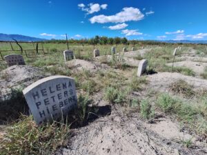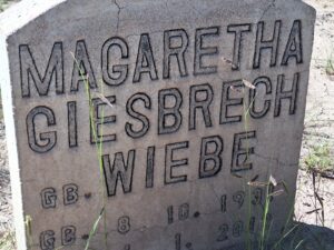 “Dentro de la comunidad menonita, cada colonia o campo como ellos la hacen llamar cuenta con un panteón en donde son enterrados los residentes de cada colonia; cementerio que por mucho es diferente al nuestro ya que ellos evitan el poner lapidas, sepulturas, barandales, o cualquier material para delimitar el terreno usando solo una pequeña placa de cemento donde marcan el nombre, fecha de nacimiento y fecha de fallecido.