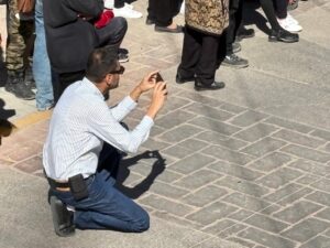 El comandante Franco director de seguridad pública municipa, siempre atento a al buen orden, correspondiente a seguridad y vialidad con elementos en cada una de las esquinas resguardando y protegiendo las vallas que alumnos del Coba 29 instalaron.