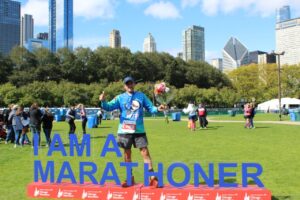 Continué así, hasta lograr participar en el reconocido Maratón de Chicago, Illinois, en lo que fue mi primera competencia internacional, uno de los cinco más importantes a nivel mundial, en el cual logre romper mi propio tiempo en 42 kilómetros 195 metros en lo personal, algo muy satisfactorio ya que inicie con 48 años de edad y es más difícil pero no imposible lograr mis propósitos y los retos hasta el día de hoy es el continuar corriendo.