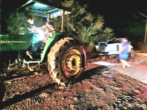 Elementos de Seguridad Pública acudieron a prestar auxilio, el cual ya estaban dando por vecinos del lugar, con un tractor agrícola.