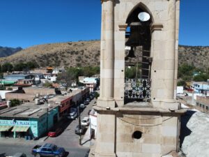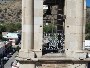 Riesgo para los trabajadores que dan mantenimiento al reloj del templo parroquial.