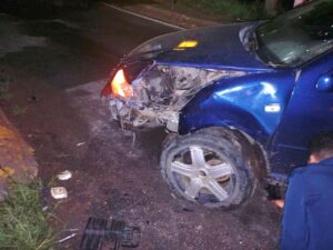 Sólo daños materiales arrojó el choque de un automóvil contra la base de un poste, registrado en el cruce de carreteras 45 y 23 en Aguilera, Canatlán.