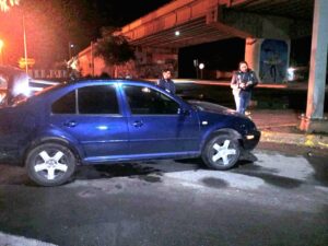 Se trata de un coche Volkswagen, Jetta tipo sedán, modelo 1999, color azul, conducido por Jesús C., de 24 años de edad y vecino del poblado Nicolás Bravo, municipio de Canatlán.