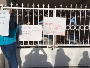 La escuela de Ciénega Grande está tomada por los padres de familia exigiendo que llegue un nuevo intendente porque el que ahí laboraba no ha estado en la escuela desde el 31 de octubre del año pasado, mencionan los inconformes.