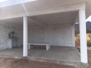 Me tocó andar haciendo gestiones para la construcción de nuestro descanso y estamos trabajando en poner un portón de herrería en la entrada principal; de hecho, ya tenemos algo de aportación económica y una persona de aquí del Presidio nos va a portar la mano de obra para la construcción de ese puerto en herrería; entre el pueblo vamos a poner el costo de los materiales, dijo.