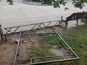 Canatlán, Dgo.- El jardín Juárez de Canatlán, espacio que también se le conoce como la plaza principal, amaneció vandalizada, con una estructura desprendida y arrojada a una de las jardineras, la que se encuentra frente a la escuela primearia estatal Gral. Lázaro Cárdenas.