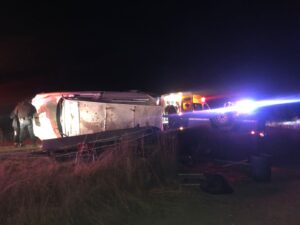 Un camión con las luces muy altas provocó el deslumbramiento del chofer, encandilándolo y al orillarse un poco para evitar chocar de frente se bajó de la cinta asfáltica y al intentar incorporarse perdió el control de la unidad, quedando la camioneta volcada fuera de la carretera, con dalos materiales.